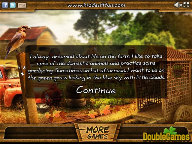 L'après-midi A La Ferme est un divertir tout neuf A Caché le jeu d'Objet que vous ne devez pas télécharger. Aller à la ferme et relâcher, ceci est gonna est intéressant. L'être éloigné de la civilisation est gonna affecte votre humeur et déclare. Respirer de l'air frais et apprécier la nature. Alors chercher quelques articles cachés pour améliorer vos compétences. Les trouver tous et obtenir pour savoir que l'histoire termine. Jouer l'Après-midi A La Ferme maintenant en ligne et avoir beaucoup d'amusement !