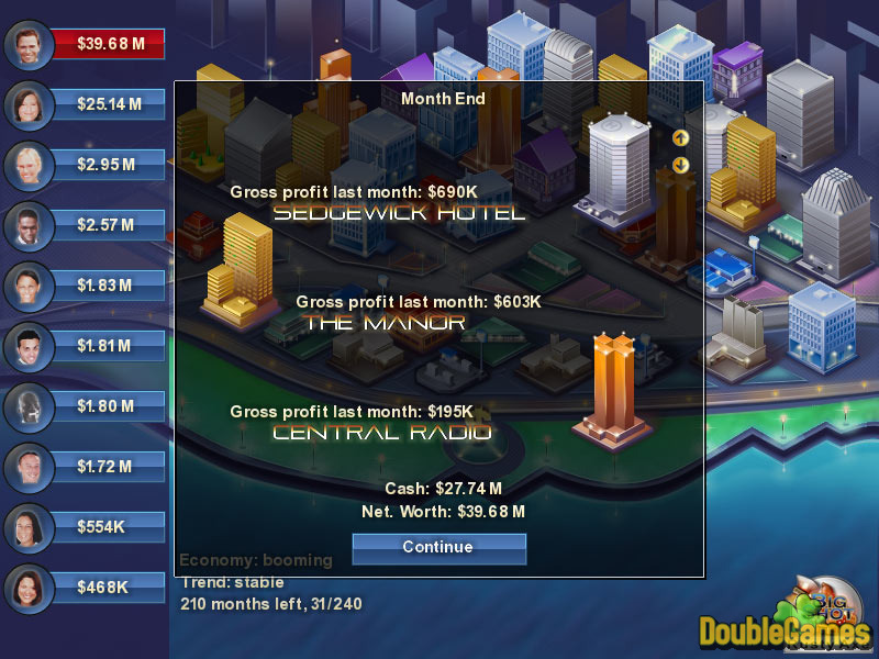 Plogez-vous dans le monde du business avec ce nouveau jeu de stratégie qui a pour titre Big$hot ! Votre objectif est de créer le porfolio qui vous aidera à surmonter toutes les difficultés dans le monde des brasseurs d'affaires. Essayez de contrôler toutes vos actions et prendre les décisions le plus vite possible. Dans ce jeu vous affronterez les adversaires impitoyables qui sont prêts à tout pour devenir plus riche que vous. Télécharger le jeu Big$hot, créez votre propre empire d'affaires et devenez le magnat le plus connu du monde !