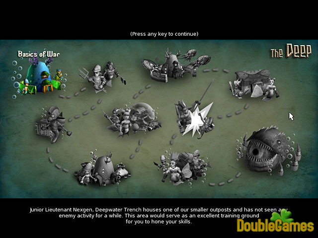 Deep Quest vous prend aux royaumes aqueux du Profond où une bataille épique entre l'Abyssians et le Gordlons est de route! Vous commanderez la Force de Défense Abyssian et entreprendrez 10 Recherches, chacun avec des cartes uniques et des défis. Améliorez vos unités et structures pour gagner des batailles. Prenez part à une histoire stupéfiante avec des torsions de complot et de grands personnages. Deep Quest est une expérience de stratégie en temps réel!
