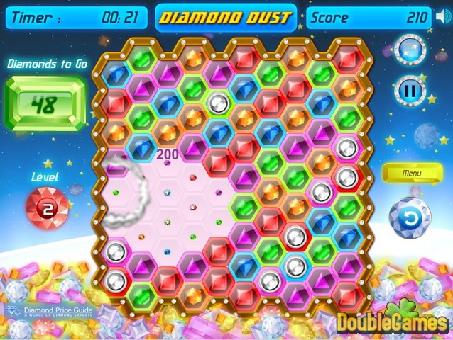 Avez-vous vu des millions de diamants ? Aujourd'hui, vous avez l'occasion non seulement de les voir, mais même jouer avec ! Bienvenue dans le dépôt brillant et scintillant de notre nouveau jeu en ligne Diamond Dust ! Etant de la catégorie de série de trois, le jeu ne vous ennuyera pas ou ne vous importunera par sa simplicité. Cette fois, vous devez non seulement cliquer sur les éléments à réunir, mais pour les faire tourner pour obtenir des chaînes de trois ou plus. Et, bien sûr, l'éclat des diamants étonne beaucoup ! Jouez à Diamond Dust en ligne et sentez-vous le propriétaire de vrais diamants !