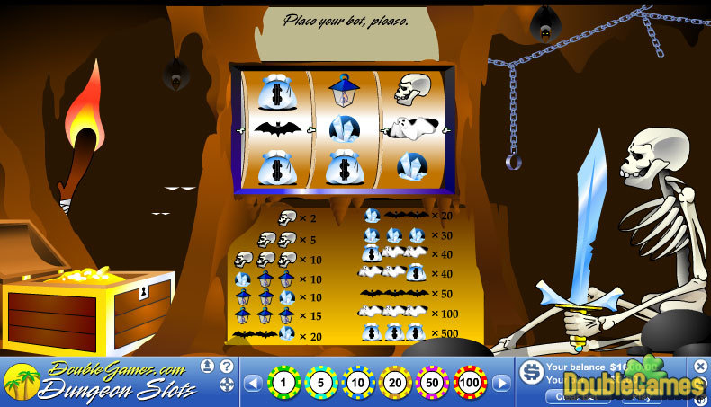 Les jeux vidéo à thème médiéval se sont avérés être un grand succès ces jours-ci. Il est donc normal que le dernier jeu de machine à sous repose sur le thème d'un cadre médiéval très bien connu avec grottes et des contrebandiers appelé ‘’Dungeons Slots’’! Beaucoup de développeurs de jeux de machines à sous sont basés sur des bandes dessinées ou sur des super-héros ainsi que des jeux, de sorte qu'il n'est pas surprenant que vous allez vous battre avec un squelette dans ce jeu et essayer de voler le trésor qu'il tente si jalousement de garder! Il suffit d'ajouter le montant d'argent que vous êtes prêt à parier et très vite vous serez en mesure de gagner de l'argent! Mais attention : si vous mettez tout votre argent, vous pouvez aussi bien tout perdre! Les graphismes sont vraiment superbes et un peu effrayant, surtout si vous avez peur des squelettes! Même la musique est incroyable, probablement inspirée par des jeux tels que ‘’Skyrim’’ et ‘’Dragon Age’’. Ce jeu est un incontournable si vous aimez vraiment les jeux de machines à sous, et peut-être certains de vos amis l'aimeront tout autant. Téléchargez-le et gagnez beaucoup d'argent dans ‘’Dungeons Slots’’. Gagnez de l'argent et laissez-le se déverser dans votre coffre au trésor!