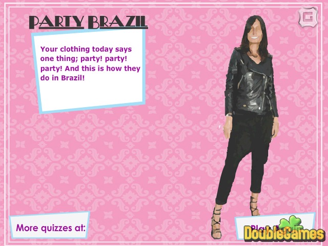 Voulez-vous savoir que le style vous convient aujourd'hui ? Le découvrir dans nouveau simple mais divertissant le jeu en ligne de mode sous la Planète de Mode de titre ! Voici le test avec les questions faciles, les répondre et obtenir votre propre résultat ! Ne pas le prendre aussi sérieusement cependant, c'est juste un jeu ! Jouer Planète de Mode et gratis et a maintenant beaucoup d'amusement !