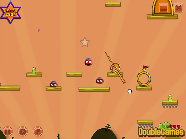 Donnez à Bobo ses gâteries préférées quand vous aurez évité les obstacles et serez rendu à la fin de chaque niveau dans "Jump, Bobo! Jump!", un jeu d'action et d'arcade ! Rencontrez d'autres créatures drôles pendant que vous controlez Bobo et essayez d'assouvir sa faim. Calculez vos sauts soigneusement en évitant les pointes et essayant de ne pas tomber dans l'abîme. Ramassez les gâteries délicieuses et atteignez la sortie sain et sauf dans "Jump, Bobo! Jump!"