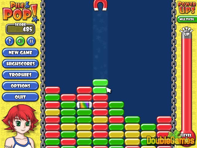 Ne manquez pas l'occasion de jouez à ce jeu époustouflant appelé Pile & Pop ! Assemblez les briques, générez les combos spéctaculaires et marquez des points ! Choisissez un des deux modes et gagnez des trophées et des récompenses ou jouez contre la montre. Attention: c'est un jeu provoquant une forte accoutumance !