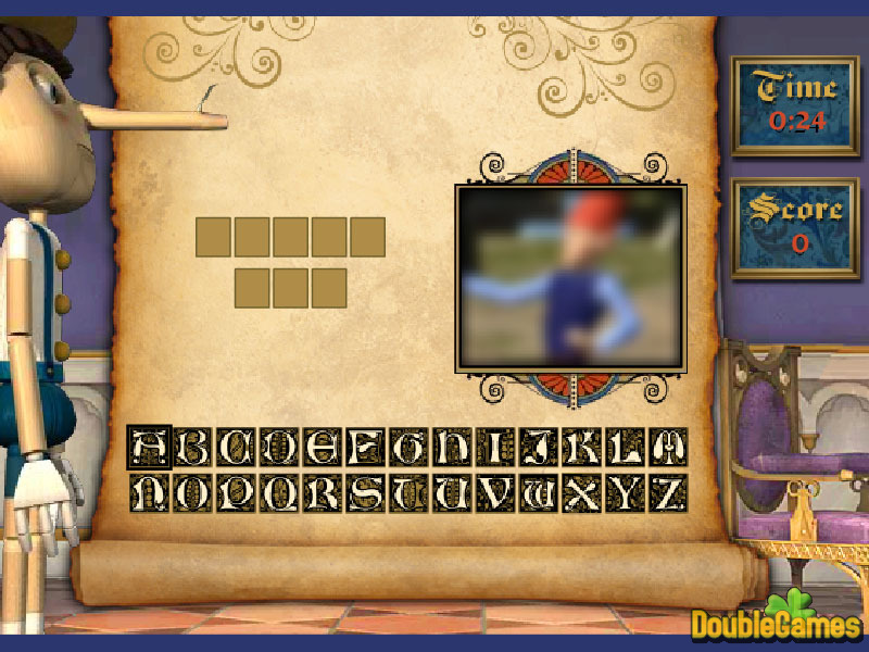 Entraînez vos facultés logiques avec vos adorables personnages du filme Shrek 4 Forever After dans le nouveau jeu de mots Pinocchio Names ! Cliquez sur les lettres, composez les noms des héros, et si vous réussissez, vous verrez les images de ces personnages ! Dépêchez-vous - le temps est limité ! Et noubliez pas que chaque fois que vous faites une faute, le nez de Pinocchio s'allonge ! Jouez en ligne au jeu passionnant Pinocchio Names ! Bonne chance !