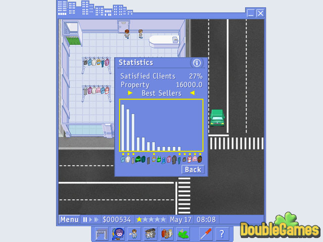 Si vous rêviez toujours de concevoir un magasin, ce jeu est spécialement pour vous ! Ouvrez votre propre boutique de vêtements, choisissez les marques des habis à vendre et admirez les résultats de votre travail. Mettez le biz sur pied et faites de votre boutique une entreprise fleurissante. Vous devrez suivre les tendences de la mode et faire tout votre possible pour attirer le plus des acheteurs. Et n'oubliez pas d'améliorer votre magasin et augmenter le nombre de ventes. Bonne chance !