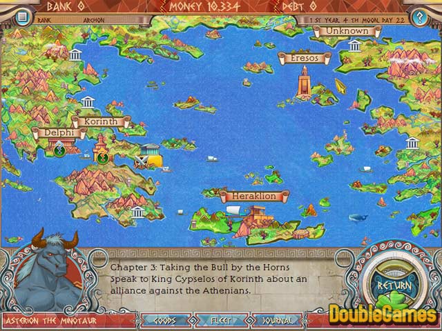 Tradewinds Odyssey est un jeu d'aventure avec des éléments de stratégie. Comme un marchand antique vous devez voyager à travers le monde entier et vendre vos marchandises partout. Mais vous devez être très prudent parce que la mer est pleine de dangers. Des pirates, des concurrents et d'autre enviers essayeront de ruiner votre entreprise commerciale. Pour protéger l'affaire, vous devez dépenser le revenu pour améliorer et renforcer votre flotte et en faire une force puissante! Cinq héros les plus forts et tas de dieux antiques sont sur votre côté, ne gaspillez pas votre temps en vain!