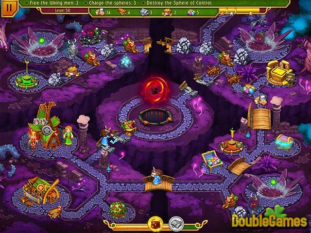 Guide the sisters through an enchanted forest, over icy mountain peaks, and into Hell itself as they pursue the Sorceress to the ends of the Earth and beyond. Visit the dwarven kingdom to forge powerful weapons and then battle giants, scorpions, and other dark creatures. Finally, gather and produce the resources the sisters need for each step of their journey.