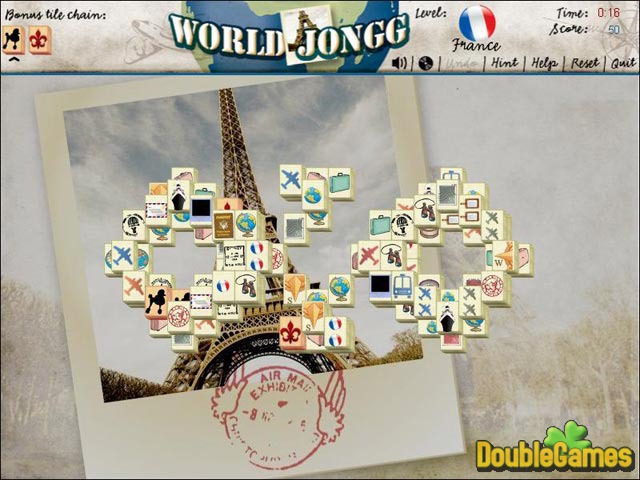 Souhaitez explorer le monde depuis votre fauteuil ? Alors, jouez à ce jeu passionant qui vous donne la possibilité unique de faire un voyage captivant autour du monde sans quitter la maison. A chaque pays son Mah-jong: décors traditionnels, musique locale et tuiles à thèmes. Visitez les pays bien connus comme des pays exotiques: France, Egypte, Indes, Turquie et d'autres. 55 jeux de tuiles et 40 pays à visiter: World Jongg vous invite à découvrir le monde de chez vous !